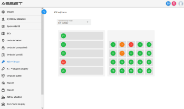 Další novou funkcí ASSET 2 je podpora klíčového hospodářství. V něm, stejně jako v případě ASSET 1, figuruje řídící jednotka jako hlavní řídící prvek matice segmentů klíčového trezoru. Zobrazení stavu a ovládání klíčového trezoru probíhá prostřednictvím grafického dotykového terminálu KMU8, který je umístěn v rámci segmentu KT 21. Jeden takový řídící systém umožňuje připojit a řídit maximálně dalších 9 rozšiřujících segmentů (KT 31 nebo KT 5). Nově byla přidána plná podpora zobrazení stavu a správy přístupů do webového klienta. Hlavní změny a zlepšení oproti minulé generaci systému jsou shrnuty v následujících bodech: