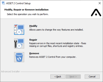 Abychom usnadnili nasazování ASSET 2, byly dokončeny projekty pro vytváření instalátorů všech zásadních částí systému. Konkrétně se jedná o následující instalátory: