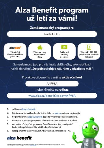 - přístup k exkluzivním nabídkám a soutěžím jen pro členy Alza Benefit.