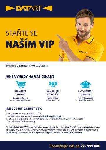 Jak jsme Vás informovali již dříve (ale obzvlášť teď před Vánoci připomenutí jistě oceníte), zajistili jsme pro Vás exkluzivní VIP slevy na veškerý sortiment elektra v prodejnách i na e-shopu DATART.